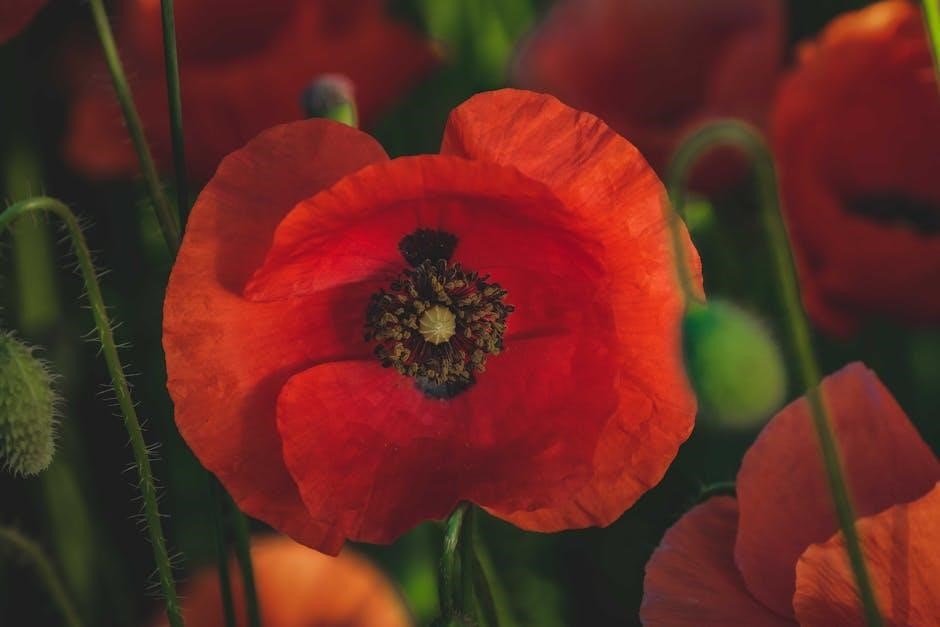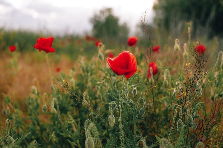 The poppy’s association with remembrance stems from the aftermath of World War I. These vibrant red flowers were among the first plants to bloom on the devastated battlefields of Flanders‚ symbolizing hope and renewal amidst destruction.